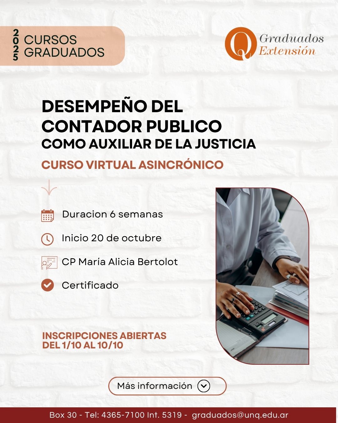 ️CURSOS GRADUADOS UNQ 2025➡️ Desempeño del Contador Publico como auxiliar de la justicia